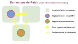 Dans cette perspective, les patchs sont considérés hétérogènes, et le résultat des interactions entre espèces locales dépend donc des conditions, notamment abiotiques, de l'environnement.