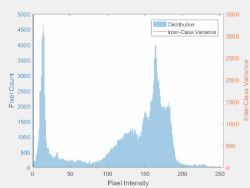 Dans la méthode d'Otsu, le seuil qui minimise la variance intra-classe est recherché à partir de tous les seuillages possibles :