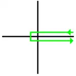 Soit R le rayon du grand cercle, et r le rayon du petit. On note le segment supérieur M, et N le segment inférieur. Comme auparavant, on prend la limite en R → ∞ et r → 0. Les contributions sur les deux cercles tendent à s'annuler. Par exemple, on peut majorer, par le lemme d'estimation avec :