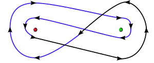 Par sa construction, la courbe est homologue à 0 mais pas homotopique à 0. Son indice autour de tout point est de 0 malgré le fait qu'à l'intérieur le plan doublement épointé il ne peut pas être réduit à un seul point.