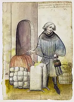 C'est une profession sujette à suspicions de détournement de farine, surtout quand le meunier est payé en nature. C'est pourquoi, au XIVe siècle, il est payé en argent. On pèse désormais le poids avec des balances, et il existe des offices de mesureurs de grain[3].