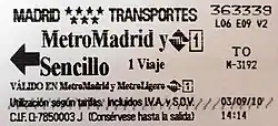 - ↑ http://www.crtm.es/red_transportes/tarifas/red_tarifas.jsp En vigueur depuis le 1er janvier 2011