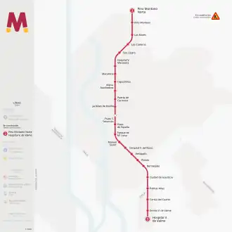 Concernant la section sud, son tracé est redéfini en , notamment pour desservir l'hôpital Virgen del Valme, situé tout au sud de Séville[29]. Le marché de mise à jour du plan d'exécution est attribué en [30]. Alors qu'il accuse déjà plus d'un an de retard, le gouvernement régional et la municipalité annoncent en un nouveau décalage de trois mois afin d'étudier un tracé alternatif dans le quartier de Bellavista[31].
