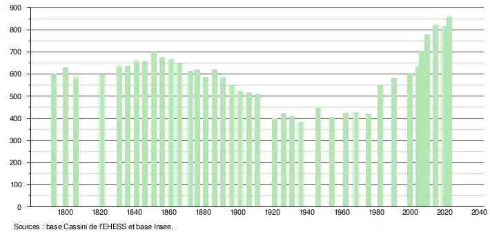 - ↑ Des villages de Cassini aux communes d'aujourd'hui sur le site de l'École des hautes études en sciences sociales.