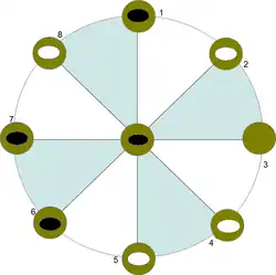 Il n'est possible de déplacer au point central, appelé putahi, qu'un pion qui est adjacent à un pion de l'adversaire.