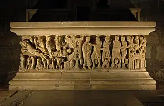 - Abbaye de Saint-Hilaire : le sarcophage-reliquaire de saint Saturnin dans l'église abbatiale