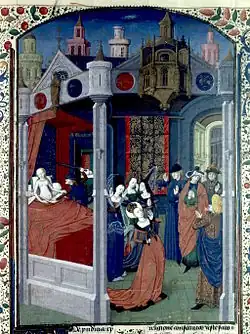 - Cité de Dieu[30], de saint Augustin, traduction de Raoul de Presles, vers 1470, comporte 23 peintures.