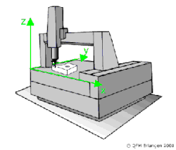 - de trois liaisons glissières appelées guidage d'axes (X, Y et Z) des règles graduées (optiques ou électriques) permettent de connaître la position sur chacun des axes de manière précise