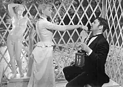 - Mais, en définitive - et les deux critiques semblent s'accorder sur ce fait -, ce qui s'impose, avant tout, c'est la façon dont Sjöberg « a modernisé et surtout élargi, dans l'espace et dans le temps, le huis clos de la pièce de Strindberg [...] dont l'action se déroule uniquement dans la cuisine du manoir »[7]. « [...] En utilisant comme décor les domaines du comte Carl durant la nuit de la Saint-Jean, Sjöberg diminue, bien entendu, l'atmosphère étouffante qu'instaure la pièce au théâtre. »[8]