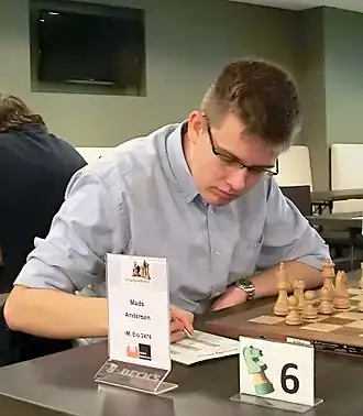 - ↑ (en) Fiche de Mads Andersen (joueur d'échecs) sur le site de la Fédération internationale des échecs