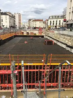 Pendant les travaux, la RATP fait état de difficultés techniques sous l’avenue Victor-Hugo avec un sol sablonneux et une nappe phréatique qui affleure à 4 mètres. Selon elle, 16 mois des deux ans de retard seraient imputables aux réseaux concessionnaires. Le tunnel est utilisé pendant le chantier pour amener le béton et évacuer les déchets et eaux polluées. Une hydrofraise creuse des tranchées jusqu’à 40 m de profondeur avant d’y couler le béton des parois de soutènement de l’enceinte de station. Cette opération achevée en , les ouvriers posent la dalle de couverture jusqu'en octobre avant d'entamer l’aménagement de la station qui devrait ouvrir au printemps 2022[5].
