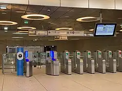 Une des entrées de la station, ouverte lors du prolongement de la ligne 14, en décembre 2020. | ||||||||