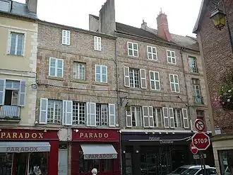 Maison du XVe siècle dont trois façades sur la cour intérieure présentent un décor de style flamboyant. L'encadrement d'une des fenêtres est mouluré d'un tore dégagé par des cavets et posé sur bases prismatiques. De part et d'autre des montants s'élèvent des pilastres triangulaires interrompus aux 2/3 de leur hauteur par un larmier en saillie au-dessus de deux arcs tréflés. Au-dessus du linteau, un cordon en larmier, arrondi à ses extrémités, joint de part et d'autre ces pilastres qui se continuent vers le haut. La seconde fenêtre possède le même décor. Les linteaux de ces deux fenêtres sont surmontés d'un panneau sculpté en bas-relief à l'intérieur d'un cadre de moulures formé par les pilastres sur les côtés et par le cordon d'appui de l'étage à la partie supérieure. Une seconde façade présente, sur la partie comprise entre une fenêtre et la porte, deux écus sculptés dont chacun est placé au centre d'un quatrelobe dont chaque lobe inscrit un arc tréflé. Une troisième façade présente également des éléments sculptés intéressants. À la suite de cette partie construite en pierre s'étend, à l'étage, une galerie dont l'ossature est à pans de bois, portée sur une sablière décorée à sa partie supérieure d'un cordon mouluré[1].