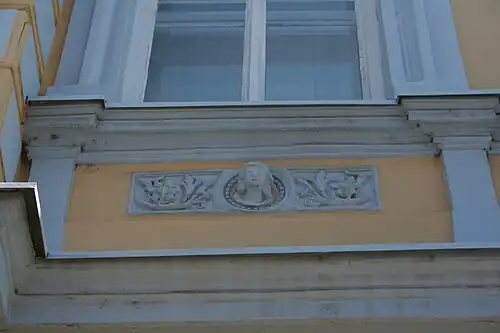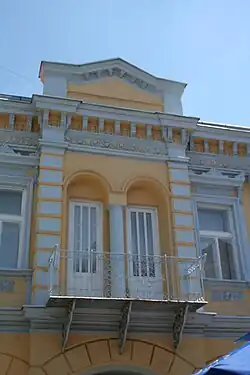 La maison est constituée d'un rez-de-chaussée et d'un étage[2]. Elle est construite en briques et en pierres enduites de plâtre et peintes ; le toit à deux pans est recouvert de tuiles[2]. Le rez-de-chaussée s'organise symétriquement autour de l'entrée principale située au centre, avec trois ouvertures latérales plus étroites (une porte d'entrée et deux vitrines)[3],[2]. Toutes ces ouvertures sont mises en valeur par des pilastres massifs avec des rainures horizontales et des archivoltes cintrées avec des rainures rayonnantes[2]. Au centre de l'étage se trouve une avancée avec un balcon en fer forgé[3] ; elle est dotée d'une fenêtre géminée très élancée, dont les deux parties sont séparées par une colonne ; de part et d'autre de cette avancée, à gauche et à droite, s'ouvrent trois fenêtres à double battants symétriquement disposées[3],[2]. Toutes les surfaces au-dessus et autour de ces fenêtres latérales sont ornées de motifs en relief avec des éléments géométriques et floraux[3],[2]. Un attique triangulaire s'élève au-dessus de la fenêtre géminée de l'avancée centrale et une corniche moulurée avec une série de consoles décoratives et des éléments en relief court au-dessous du toit[3],[2].