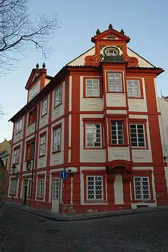 Ce petit palais bourgeois a été construit sur un terrain irrégulier en 1694 par Abraham Unkoffer, un citoyen de Hradčany, sur le site d’un bâtiment médiéval antérieur qui a subi de grands dommages pendant la guerre de Trente Ans, notamment pendant le siège suédois de Prague. Unkoffer a fait décorer le bâtiment de fresques, de plafonds peints et de miroirs vénitiens. Le pianiste et compositeur Rudolf Friml y a vécu[2].