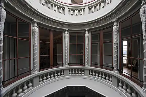 Au début du XIXe siècle, chaque niveau était dédié à un moment de l'existence : les réceptions au premier, le travail au deuxième, la famille au troisième, les loisirs au quatrième. Entre le rez-de-chaussée et le premier étage se trouvent deux escaliers. L'un est en pierre avec un garde-corps en fer forgé sculpté, il était destiné aux propriétaires. L'autre était réservé aux domestiques, il s'agit d'un escalier en bois, à vis de Saint-Gilles.