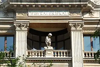 C'est dans ce contexte que l'architecte Henri Beyaert construit, dans le style de l'architecture néo-Renaissance flamande}[1],[2], la Maison des Chats sur le boulevard du Nord (devenu depuis le boulevard Adolphe Max).