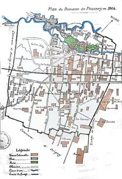 L'occupation des sols de la commune, telle qu'elle ressort de la base de données européenne d’occupation biophysique des sols Corine Land Cover (CLC), est marquée par l'importance des territoires agricoles (64,1 % en 2018), une proportion sensiblement équivalente à celle de 1990 (64,8 %). La répartition détaillée en 2018 est la suivante : terres arables (58,9 %), forêts (21,9 %), zones urbanisées (7,5 %), zones agricoles hétérogènes (5,3 %), zones industrielles ou commerciales et réseaux de communication (4,6 %), milieux à végétation arbustive et/ou herbacée (1,9 %)[12]. L'évolution de l’occupation des sols de la commune et de ses infrastructures peut être observée sur les différentes représentations cartographiques du territoire : la carte de Cassini (XVIIIe siècle), la carte d'état-major (1820-1866) et les cartes ou photos aériennes de l'IGN pour la période actuelle (1950 à aujourd'hui)[Carte 3].