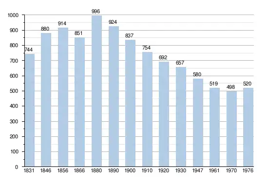 - Sources:INS, Rem:1831 jusqu'en 1970=recensements, 1976= nombre d'habitants au 31 décembre