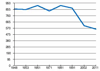 | 861 | 851 | 914 | 830 | 912 | 875 | 608[2] | 553[1] |