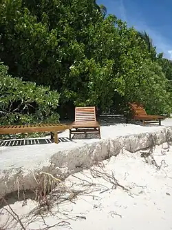 Cependant, certaines études récentes suggèrent que les récifs de corail en bonne santé peuvent s'adapter à une montée des eaux, et que les îles pourraient suivre ce mouvement (moyennant d'éventuels changements de forme)[18]. Néanmoins, les récifs autour de Malé sont très loin d'être dans une santé suffisante (pollution, urbanisme hasardeux, surexploitation...), et l'érosion y est telle que l'île pourrait avoir disparu avant même que le niveau de l'eau ne monte de manière significative.
