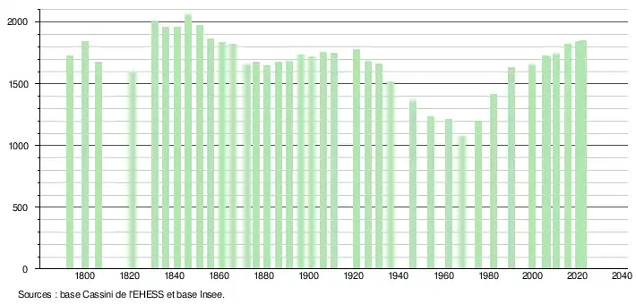 1 849 hab. (2022 en évolution de +0,76 % par rapport à 2016)