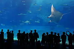 - ↑ (en) « We have just recently had our 4th successful manta ray (Manta birostris) birth in captivity at Okinawa Churaumi Aquarium. », Okinawa Churaumi Aquarium (consulté le )