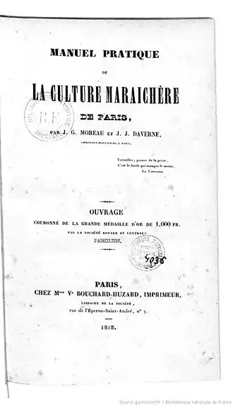 - ↑ J.-G. Moreau - J.-J. Daverne, « Manuel pratique de la culture maraîchère de Paris - Préface d'Antoine Jacobsohn », sur Éditions du Linteau (consulté le ).