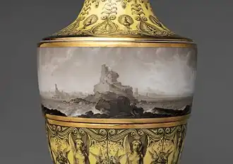 - ↑ (Natalia Kasakiewitsch, « Das Service des Eugène de Beauharnais », Keramos, no 141, juillet 1993, p. 13-32. Cité dans Rare paire de grands vases à Sotheby's, sur cyrillefroissart.com.