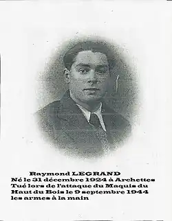 - ↑ Information issue des archives de l'Amicale des anciens F.F.I et résistants du maquis du Haut-du-Bois.