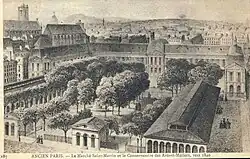 En , la ville de Paris supprime le marché Saint-Martin et cède le terrain à l'État pour y construire l'École centrale des arts et manufactures[4] (aujourd'hui annexe « Montgolfier » du Conservatoire national des arts et métiers, au 2, rue Conté).