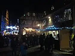 Il propose également de quoi se restaurer avec ses nombreux restaurants alsaciens et boutiques de viticulteurs locaux, produits de la gastronomie régionale traditionnelle, bretzel, bredele, mannele, beerawecka (pain de fruit), tartines, vin chaud, cannelle, gâteaux, pain d'épices, confiseries, Pâte d'amandes, fruit confit ...