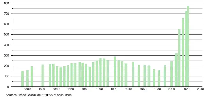 - ↑ Fiches Insee - Populations de référence de la commune pour les années 2006, 2007, 2008, 2009, 2010, 2011, 2012, 2013, 2014, 2015, 2016, 2017, 2018, 2019, 2020, 2021 et 2022.