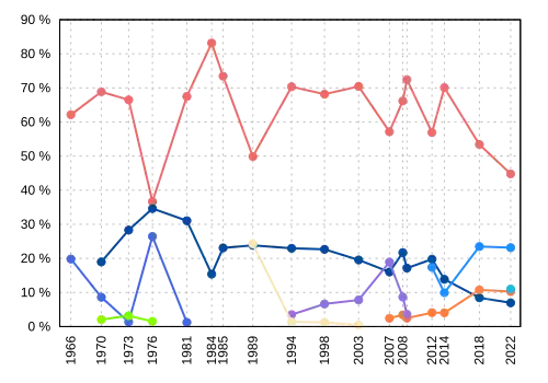 | Le taux de participation lors de l'élection était de 69 % et 423 bulletins ont été rejetés. | |||||