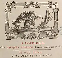 - ↑ Les Faulcon, imprimeurs-libraires à Poitiers au XVIIIᵉ siècle