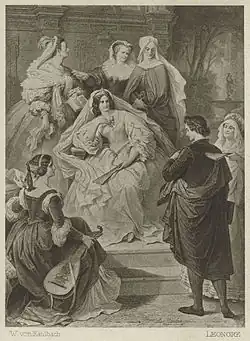 « Intérieurement, elle considérait la première société viennoise avec une certaine distance, ce qui explique peut-être pourquoi elle cherchait une compensation sous la forme d'un salon "intellectuellement" significatif. Liszt, Wagner, Tegetthoff, le héros naval de l'Autriche, Makart et son protégé spécial, le poète Ferdinand von Saar, fréquentaient les soirées de la princesse, que Kaulbach a peinte comme la Léonore du Tasse. L'appartenance des théâtres viennois au portefeuille de son mari permet à la princesse de se consacrer au Burgtheater. »[2]