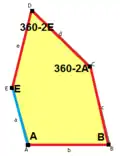 ![]() 2a + c = d = e A = 90°, 2B + C = 360° C + E = 180° |