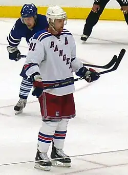 | 2008-2009 | Rangers de New York | LNH | 82 | 24 | 22 | 46 | 57 | 7 | 1 | 2 | 3 | 10 | ||