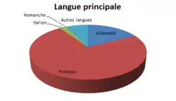 73.23 % de la population parle français, 10.24 % allemand , 2,1 % italien.