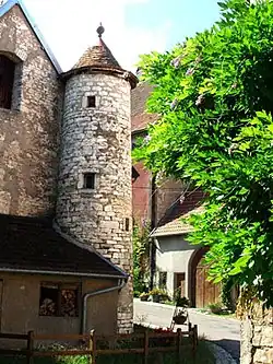 - Hôtel Terrier de Santans, qui abrite la mairie, a été construit au XVIe siècle par la famille Terrier de Santans. Il présente une façade à deux niveaux, percée de fenêtres à meneaux de la renaissance, et encadrée de deux avant-corps[34].