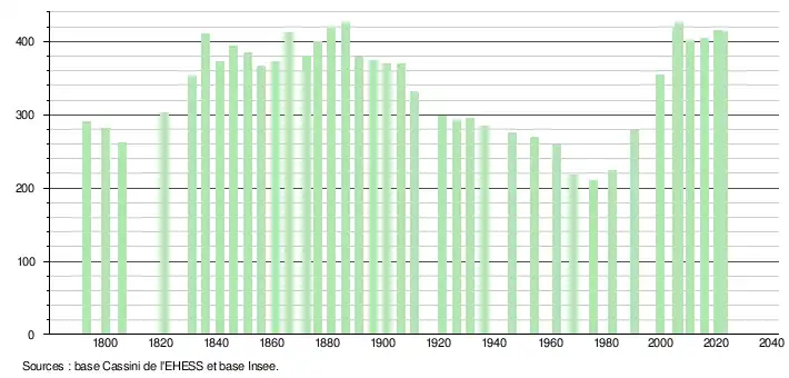 - ↑ Fiches Insee - Populations de référence de la commune pour les années 2006, 2007, 2008, 2009, 2010, 2011, 2012, 2013, 2014, 2015, 2016, 2017, 2018, 2019, 2020, 2021 et 2022.