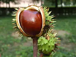 Le marron est un nom de couleur, d'après celle des graines des marrons, châtaignes et marrons d'Inde, qui désigne des couleurs faiblement lumineuses dont la dominante est orangé-rouge à rouge[1].