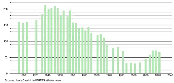 - ↑ Population municipale de référence en vigueur au 1er janvier 2025, millésimée 2022, définie dans les limites territoriales en vigueur au 1er janvier 2024, date de référence statistique : 1er janvier 2022.