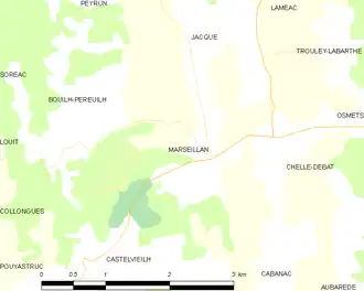 La commune de Marseillan se trouve dans le département des Hautes-Pyrénées, en région Occitanie[I 1].