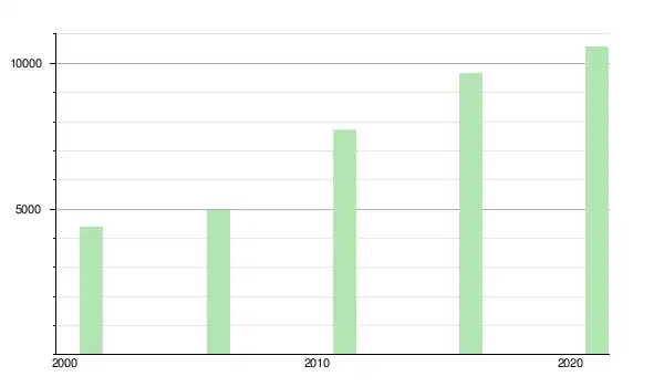 | Population : | 7 716 (+55,0 % depuis 2006) | 4 968 (+13,8 % depuis 2001) | 4 365 (+25,4 % depuis 1996) |