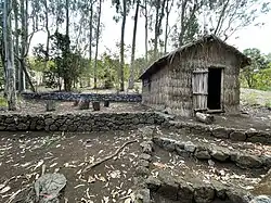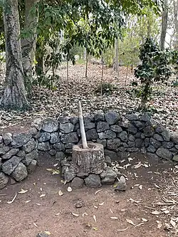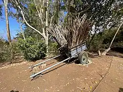 Pilon traditionnel utilisé pour la nourriture ou des soins à base de plantesUn boucan traditionnelUne charrette de canne à sucre