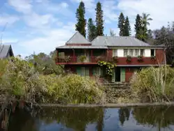 À l'origine, le bâtiment principal servait de poste de vigie: deux tours reliées par une petite passerelle. Ces tours permettaient de surveiller la côte ouest, entre Piton Saint-Leu et Saint-Gilles, et de donner l'alerte à la batterie de Sans-Culottes en cas d'arrivée de bateaux anglais ennemis. Datant de 1794, ces tours sont à la base de la maison d'habitation de la famille. Leur charpente est en bois de fer. De nombreux aménagements pour pouvoir loger celle-ci sont réalisés, jusqu'à obtenir 36 pièces. La forme actuelle de la villa remonte à 1931[2]. Les murs de la maison sont recouverts de bardeaux, autrefois en bois de Tamarin des Hauts, aujourd'hui en bois exotique traité. Le toit est en zinc depuis les années 80, les bardeaux n'ayant pas résisté aux intempéries.