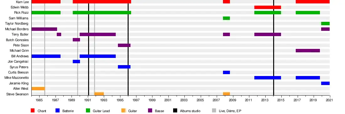 - Bill Andrews – batterie (1984–1987) (1990-1993)[7]