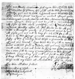 To Capt. Robert Campbell of Glenlyon - ↑ Though the command of superior officers be very absolute, yet no command against the laws of nature is binding; so that a soldier, retaining his commission, ought to refuse to execute any barbarity, as if a soldier should be commanded to shoot a man passing by inoffensively, upon the street, no such command would exempt him from the punishment of murder.