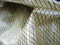 Le tissage des fils ou fibres est souvent un tissage formant une trame de 148 par 160 soit environ 13,10 m/kg pour une largeur de rouleau (laize) de 102 cm[27]. Un tissage serré est préféré pour les voiles de spi et les voiles hautes. La qualité du tissage est primordiale, il vaut mieux un bon tissage avec une fil moyen qu'un mauvais tissage avec un fil excellent.